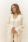 Теплий вʼязаний кардиган у довжині максі, вільного фасону, широкі рукави. Пояс йде у комплекті. Представлений в єдиному розмірі, підійде на обхват до 106 см. Довжина 130 см